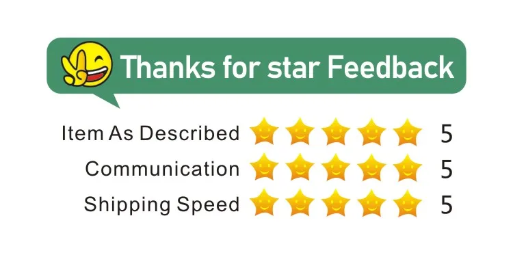 أولاً، شكرًا جزيلاً لك على شراء منتجاتنا، ونأمل أن تجعلك منتجاتنا راضيًا، وإذا كانت هناك أي مشكلة مع المنتج، فيرجى الاتصال بنا في الوقت المناسب، وسنقدم لك بالتأكيد إجابة مرضية. من فضلك لا تعطي تقييمات سيئة حسب الرغبة. الرضا يمنحنا العلامات الكاملة، أتمنى لك ولعائلتك كل التوفيق!