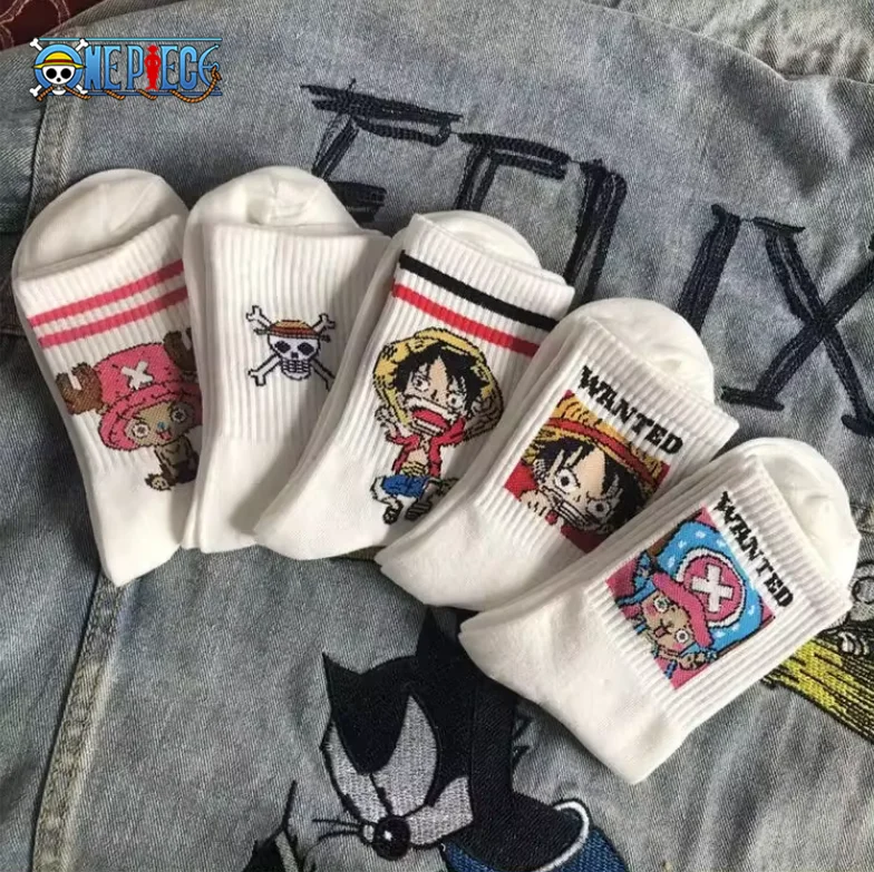 جوارب One Piece أنيمي – 5 أزواج مطبوعة للأطفال، قطنية ومريحة للهدايا